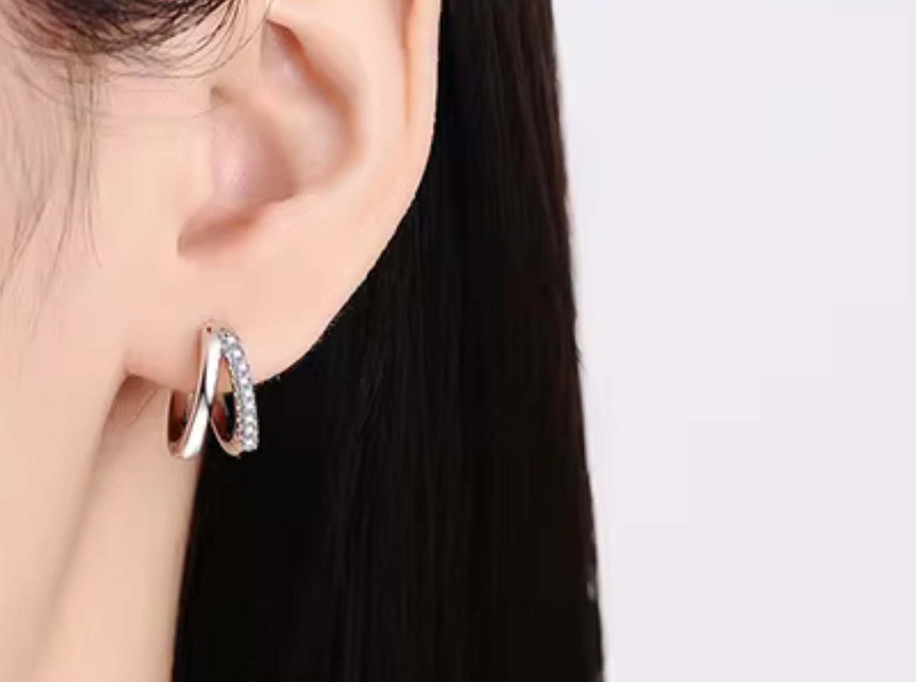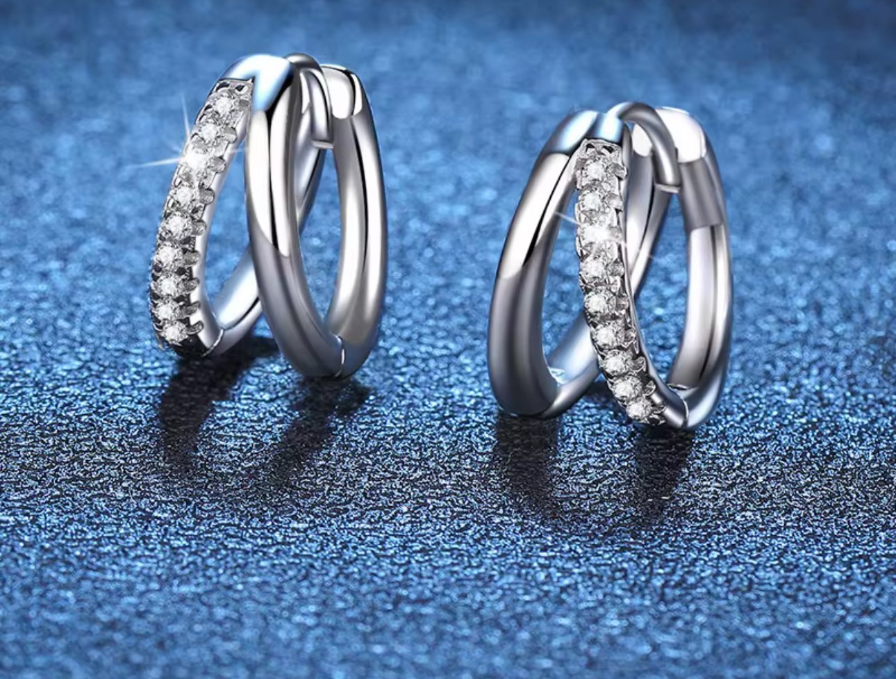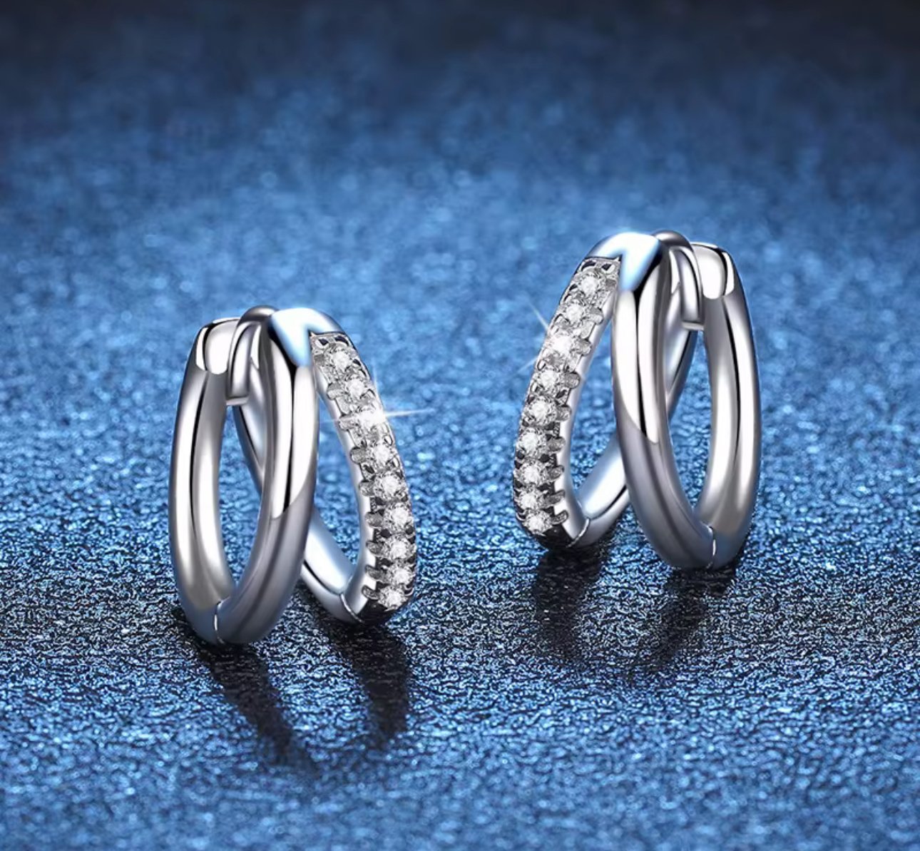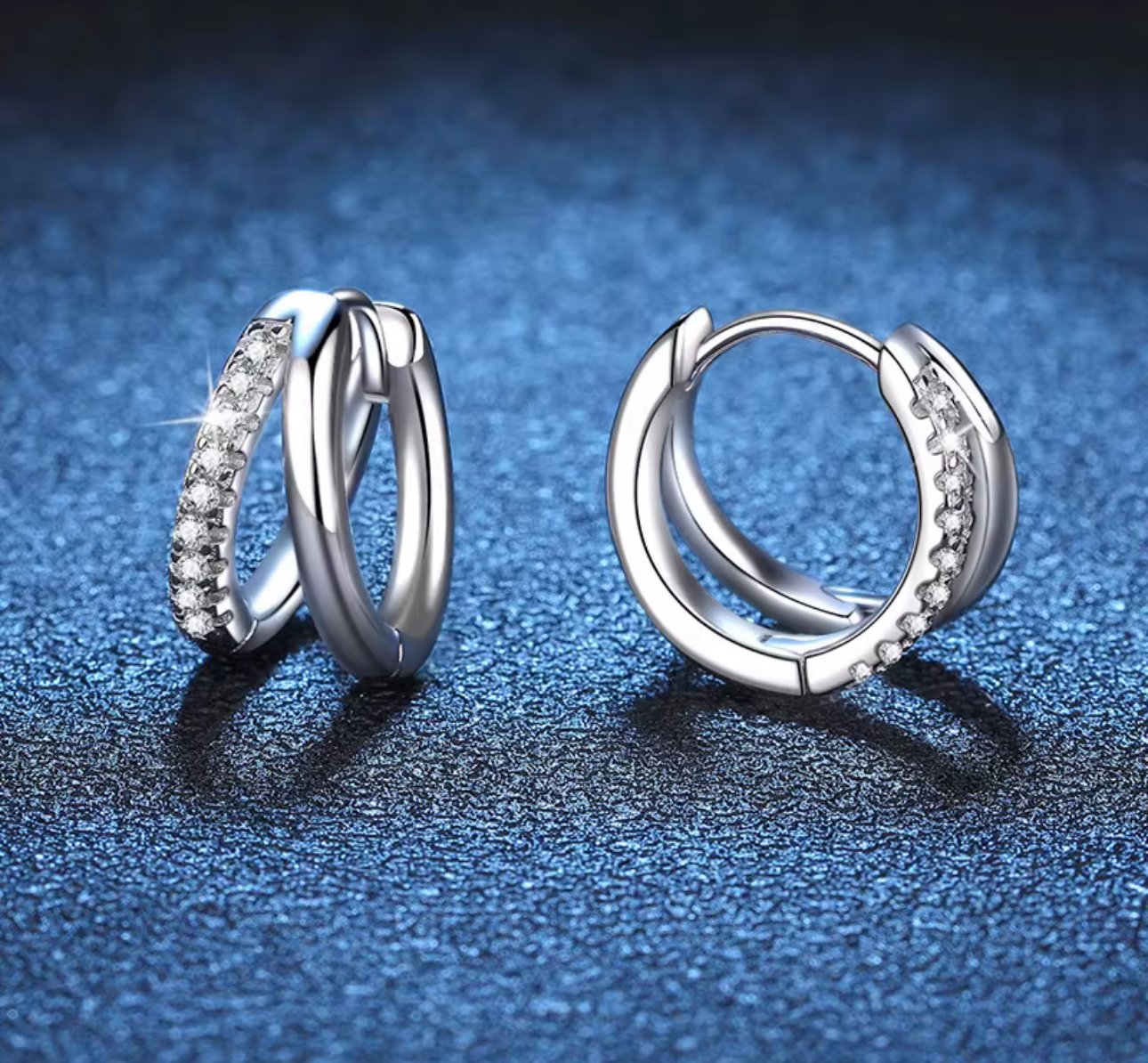 0.15ct Double Ring Moissanite Hypoallergenic Jewellery Earrings 925 Silver Moissanite Hoop Earrings