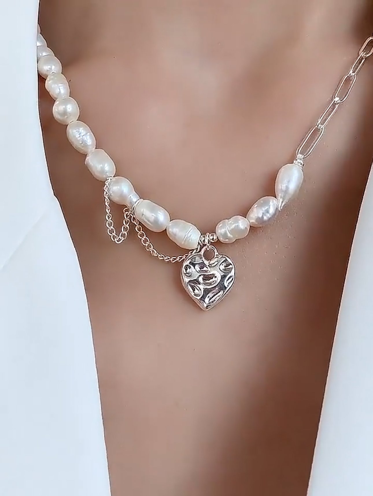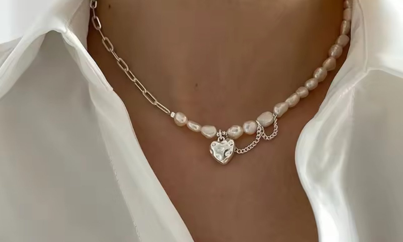Exquisite 925 Sterling Silver Love Heart Baroque Pearl Bracelet and Choker Necklace Set for Women – a stunning ensemble that showcases the elegance of shimmering silver intertwined with the natural beauty of lustrous baroque pearls. This captivating jewelry piece features a delicate chain adorned with intricately designed love hearts, perfectly complementing the unique shapes and iridescent hues of the pearls. Ideal for adding a touch of sophistication and charm to any outfit, this set is a timeless accessory for the modern woman who appreciates both style and grace.