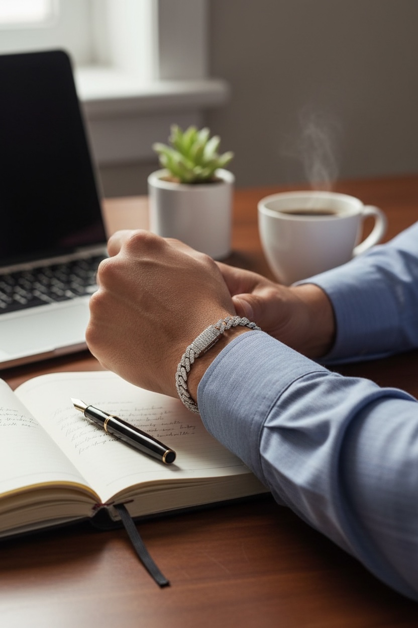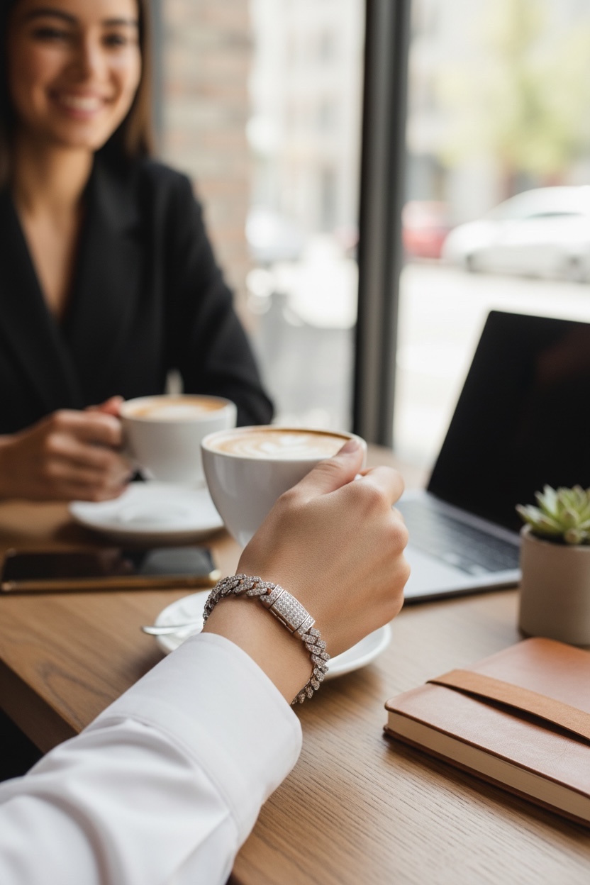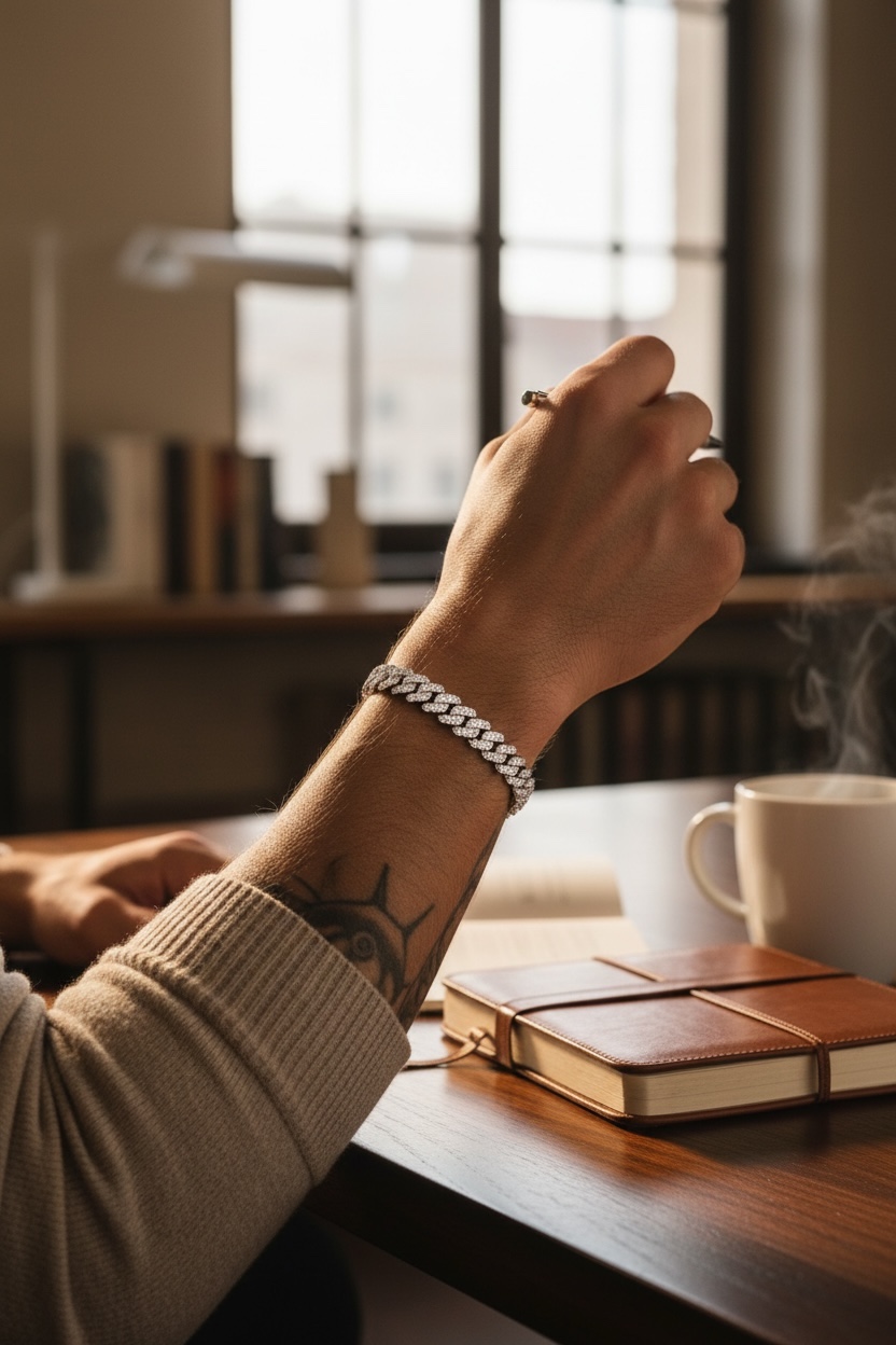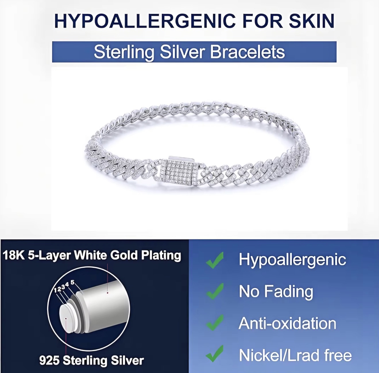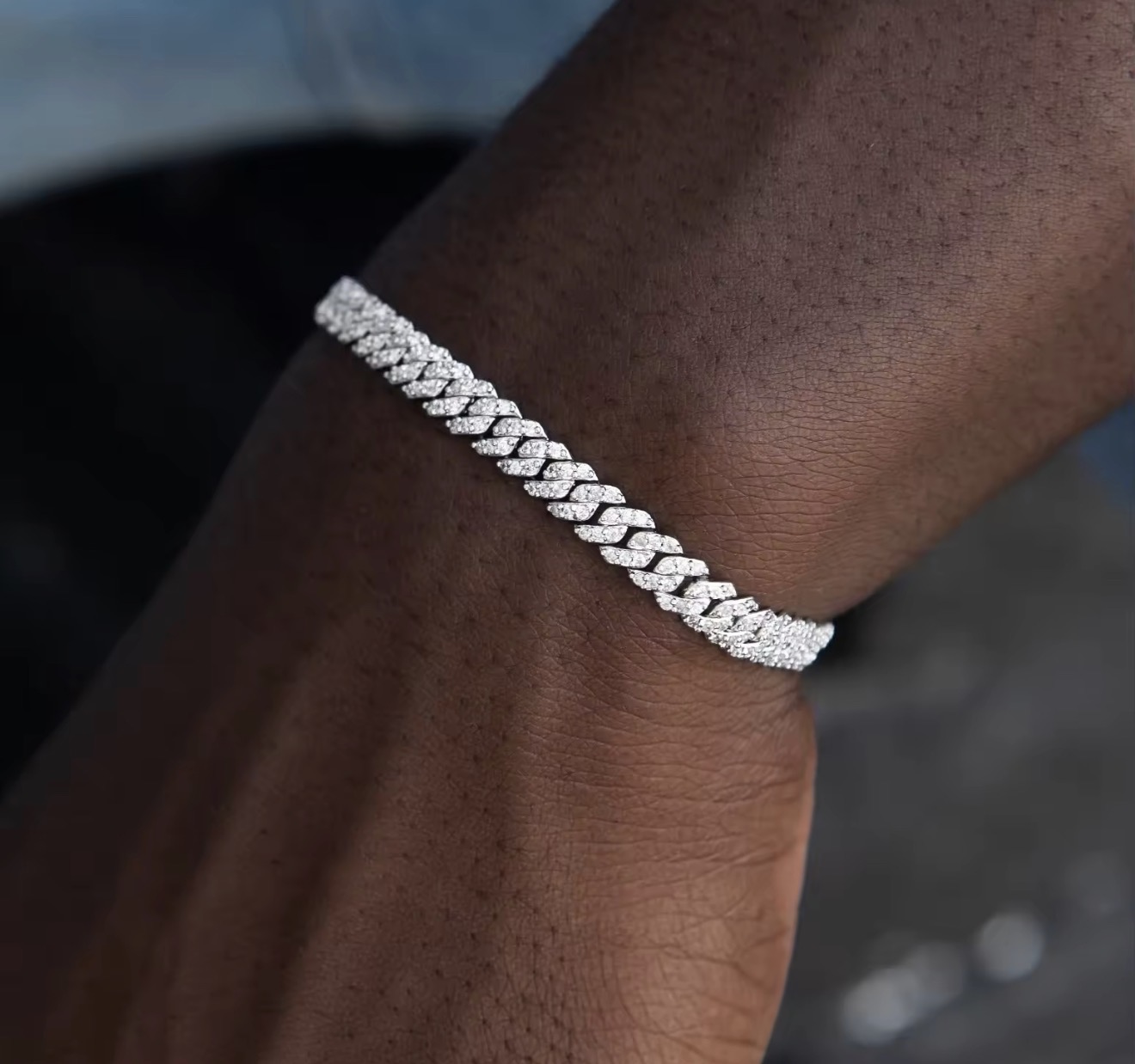 These iced-out diamond Cuban bracelets are crafted from 925 sterling silver and plated with 18k white gold. Sterling silver is hypoallergenic and nickel-free, ensuring it won’t irritate your skin. The professional 18k white gold finish is five times more expensive in gold content and 300% purer in colour than standard plating, enhancing the bracelet’s shine and reflections. This gives the men’s bracelet character and charm. Additionally, the chain is soft and comfortable for everyday wear.