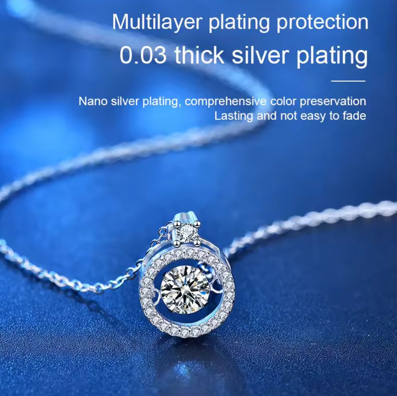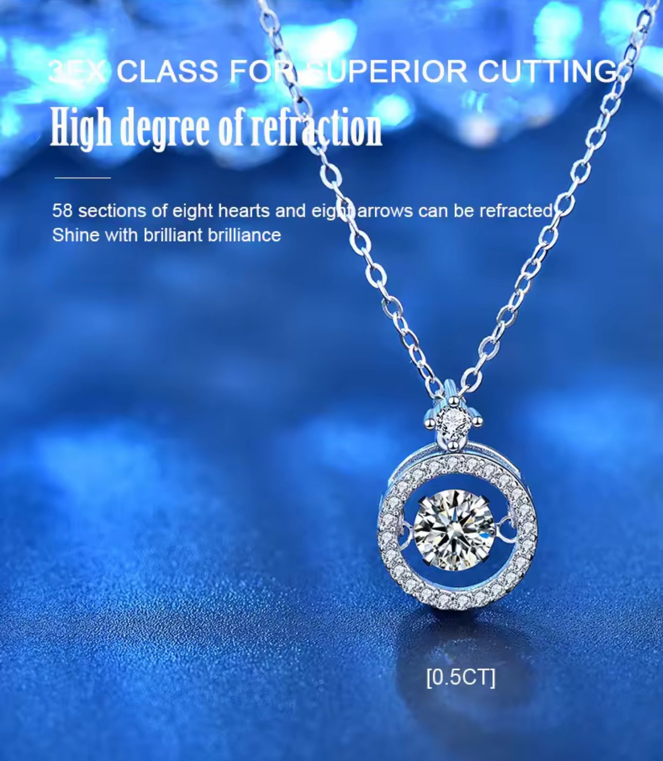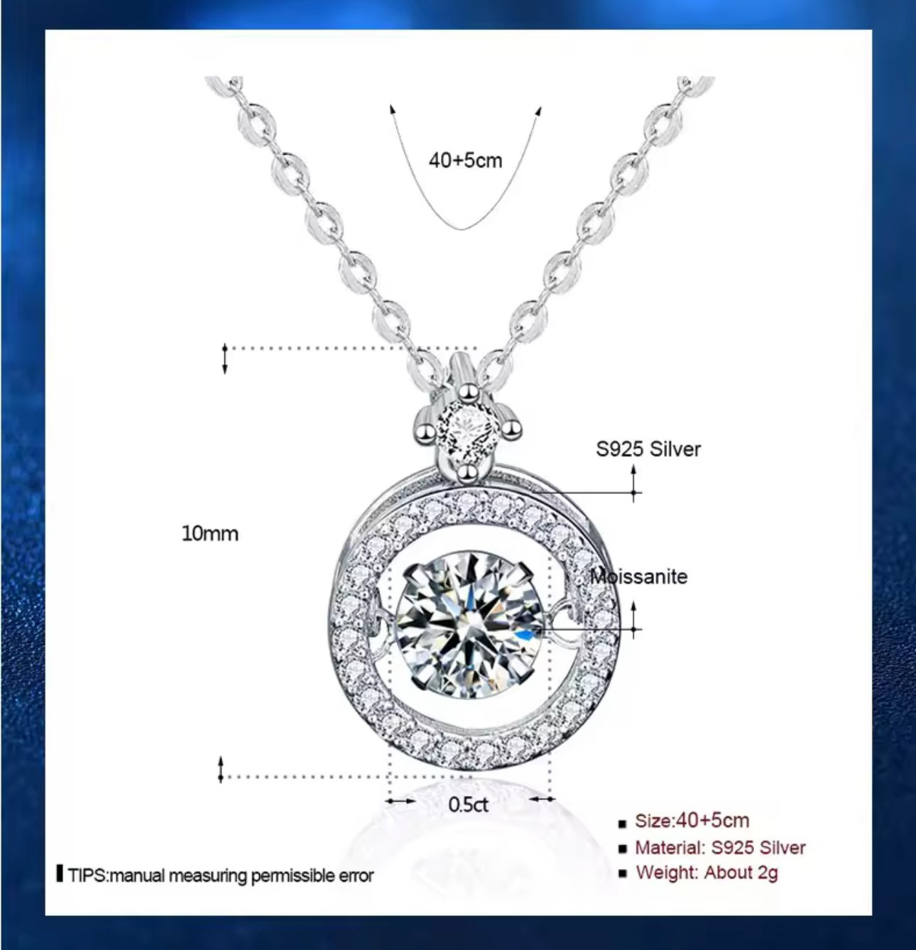 The main stone, Moissanite, is expertly cut and polished to maximize its brilliance, while the luxurious 925 sterling silver enhances its radiance and provides durability. The necklace is designed with a refined link chain that complements the pendant beautifully, ensuring both comfort and style.