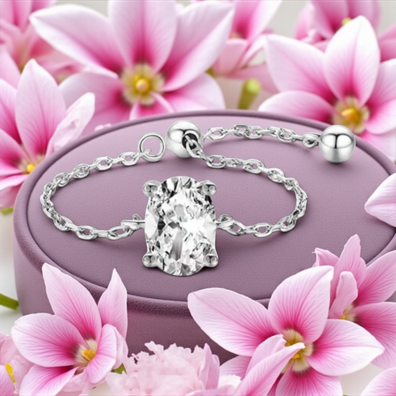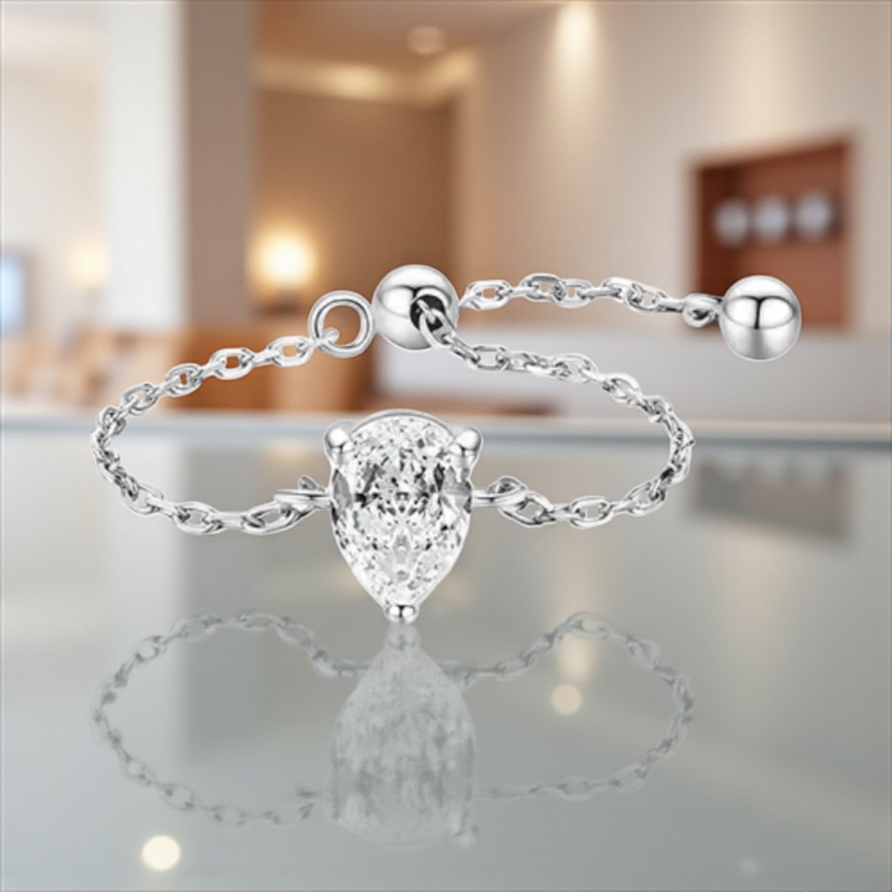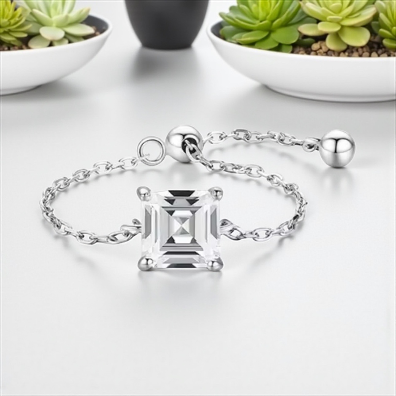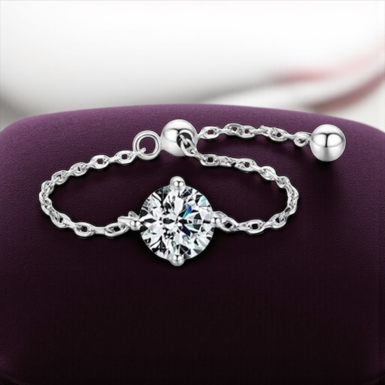 Unveil the allure of our breathtaking 925 Sterling Silver Chain Ring, a masterful creation for girls and women who cherish the beauty of fine jewellery. This exquisite piece is adorned with a dazzling AAA-grade cubic zirconia, a gem that sparkles with an enchanting brilliance, effortlessly reflecting and refracting light to create a captivating display.