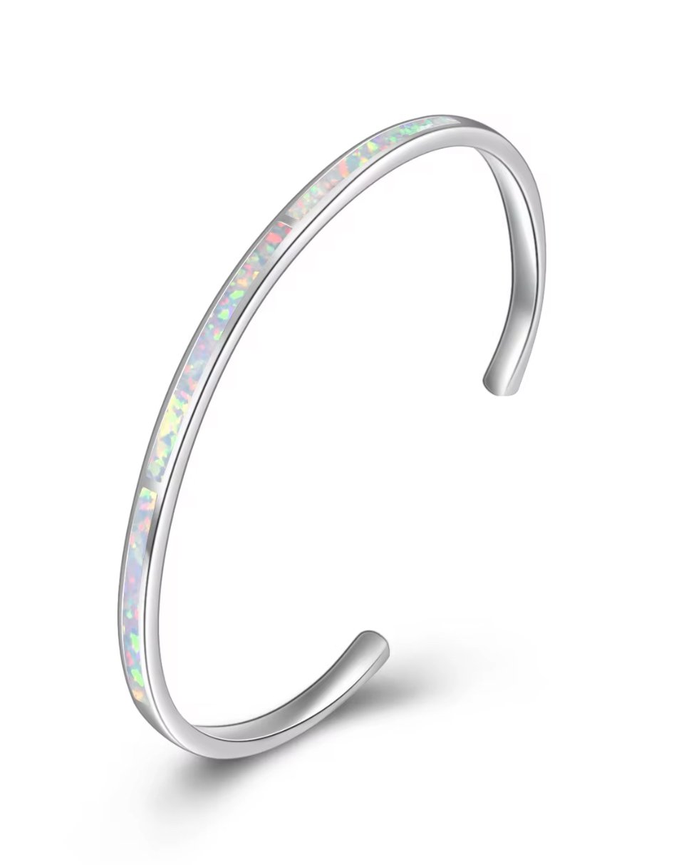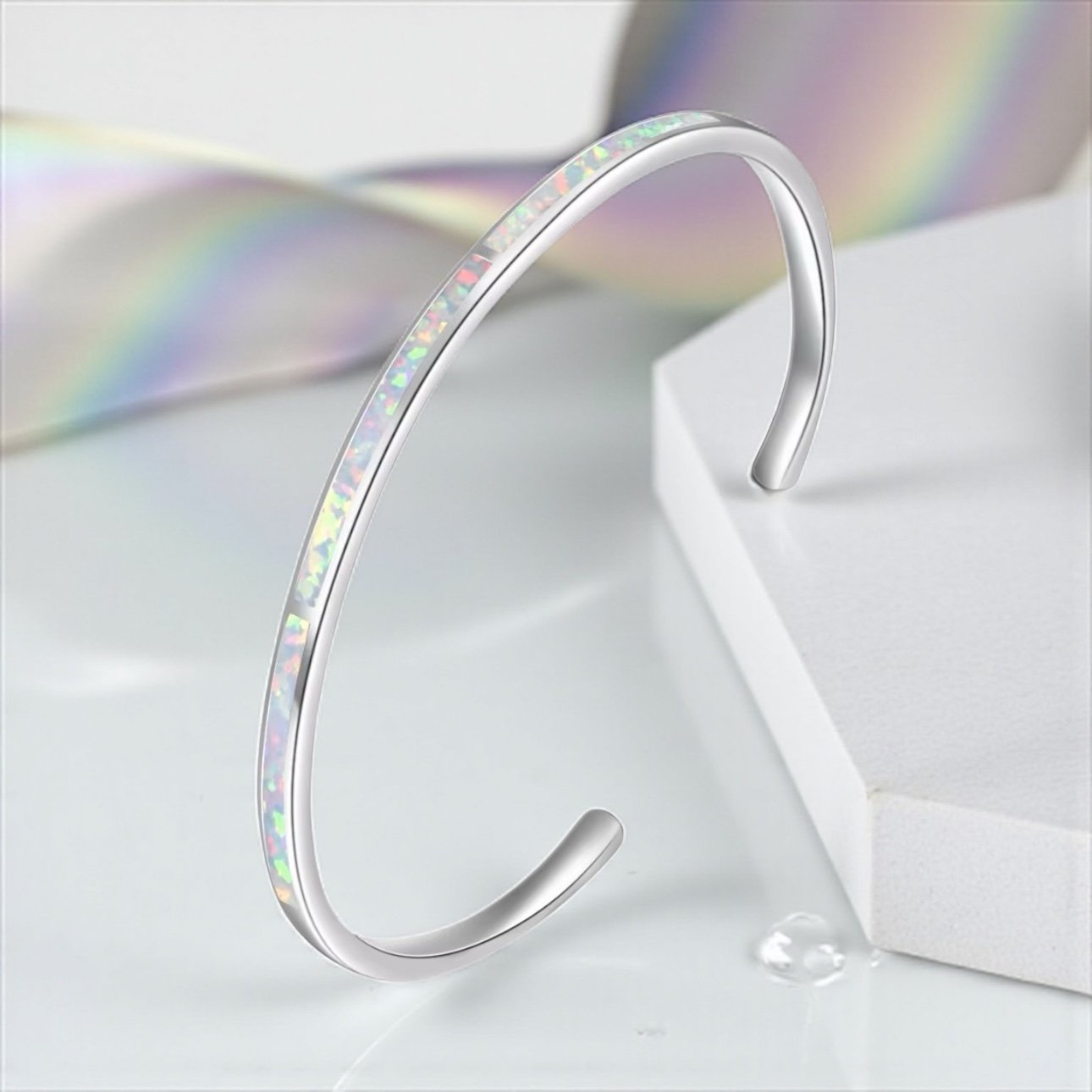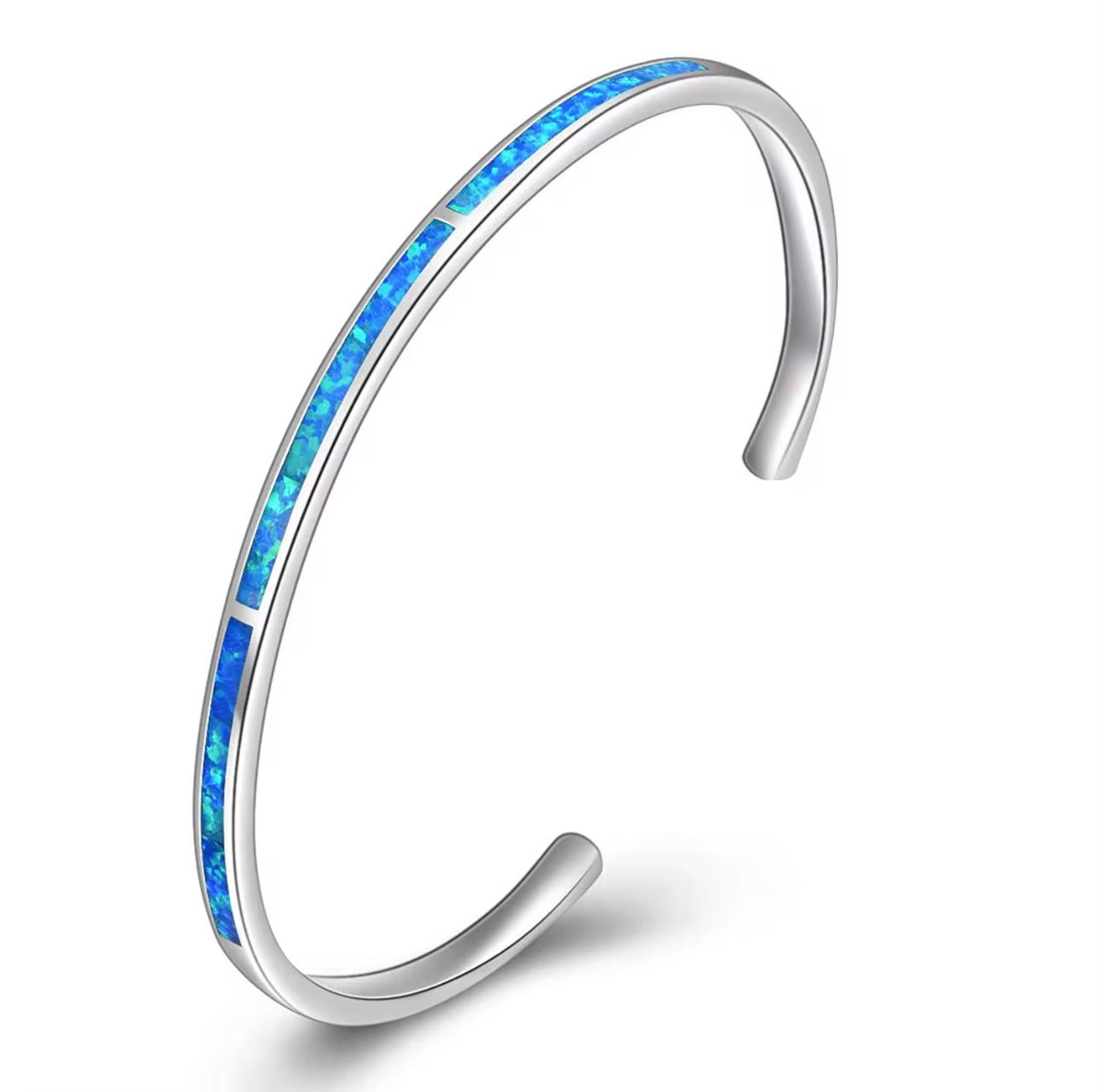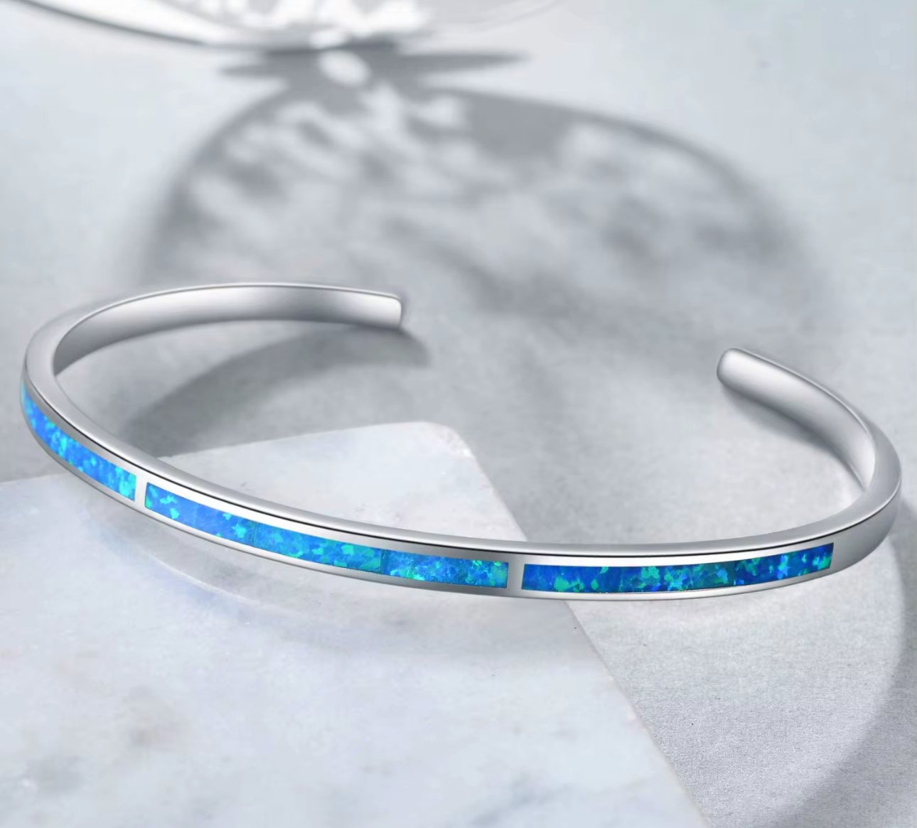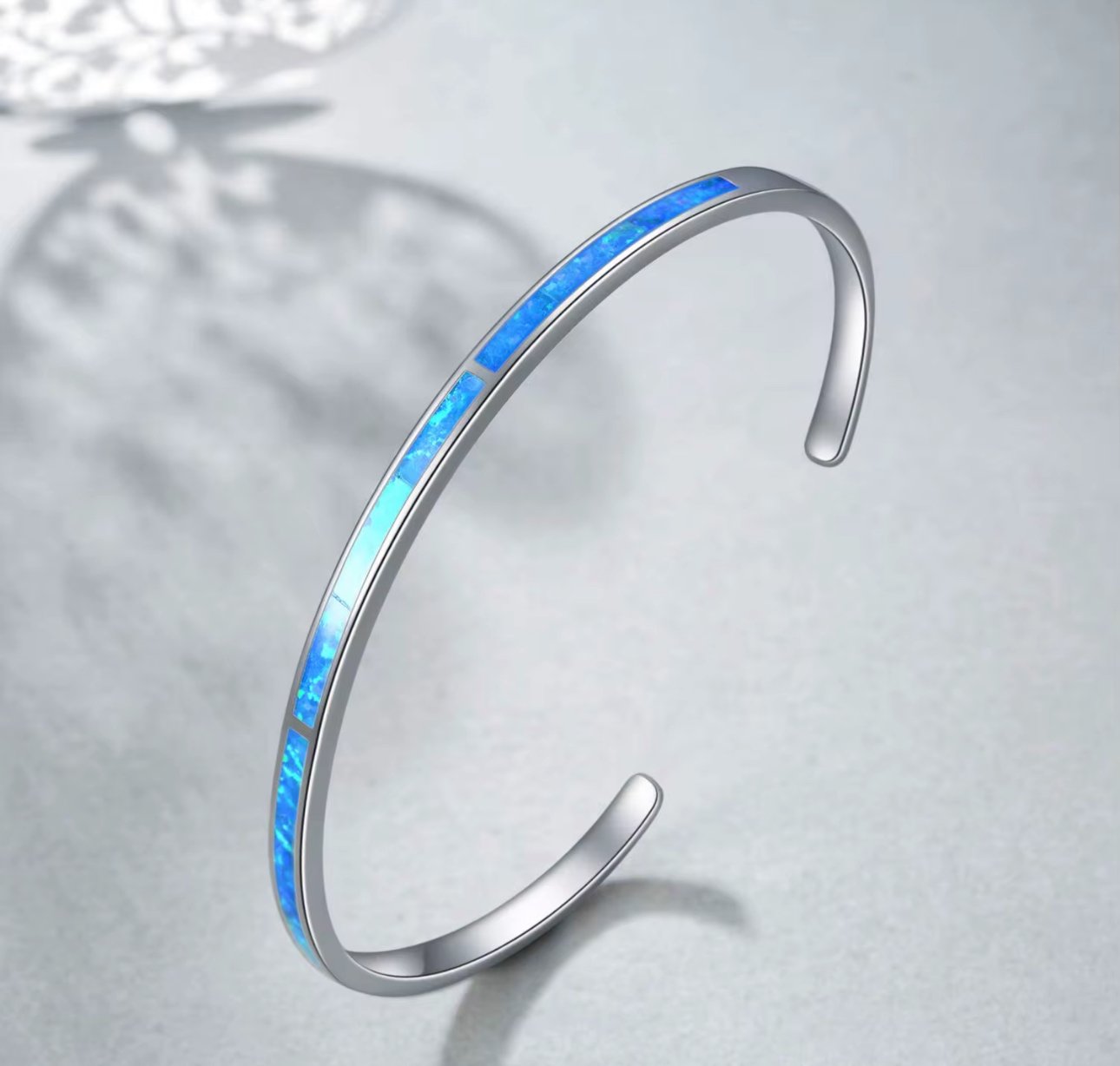 Introducing our exquisite Fine Jewelry piece: a meticulously crafted cuff bracelet made of premium 925 sterling silver. This stunning open bangle features a rich, two high-quality blue opal, also silver at its center, showcasing a mesmerizing play of colors that shifts beautifully in the light. The smooth curves of the bracelet ensure a comfortable fit on the wrist, making it a perfect accessory for both casual outings and elegant occasions. This unique statement piece not only embodies sophistication but also reflects the exceptional artistry and craftsmanship of fine jewelry design. Ideal for gifting or as a luxurious addition to your own collection, it’s a treasure that captures the essence of timeless elegance.