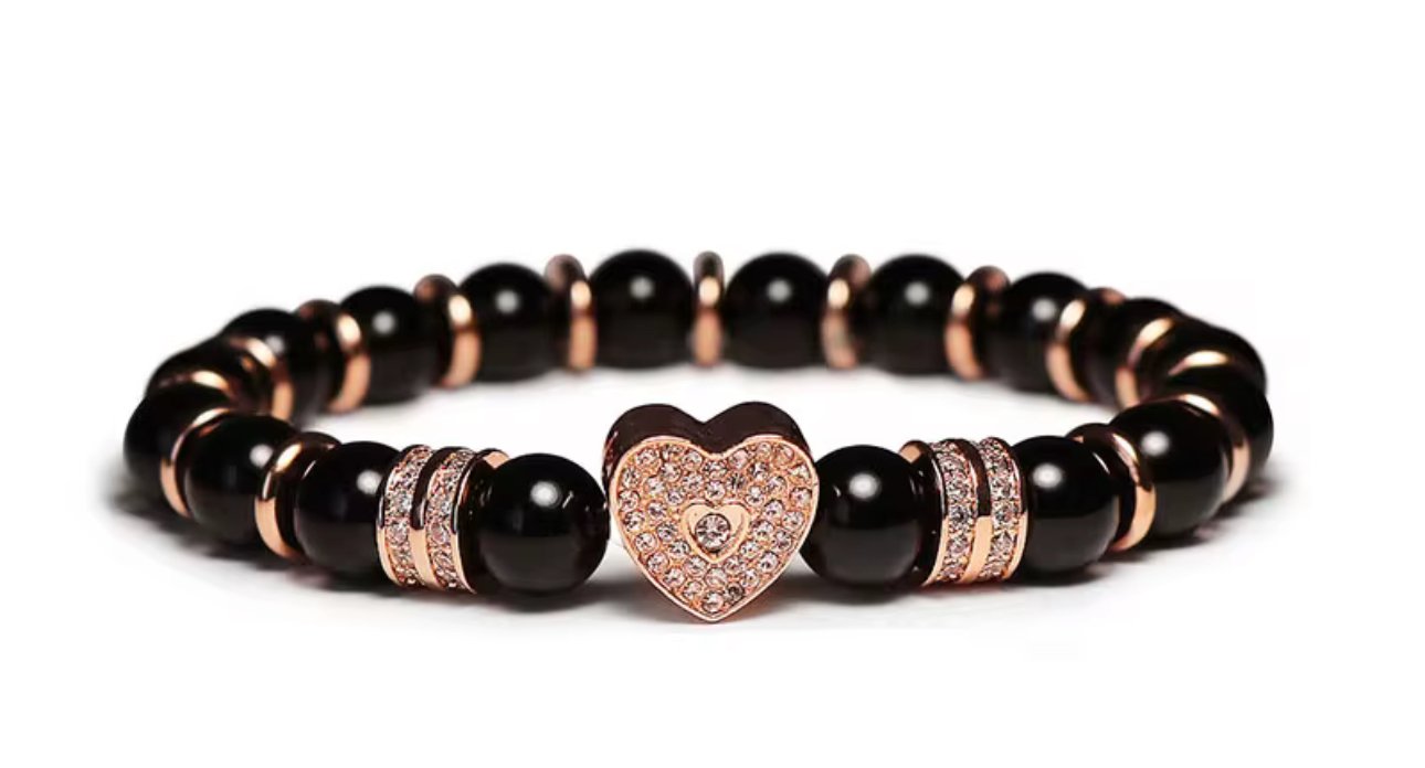 High Quality Natural Stone CZ Pave Heart Love Charm Beaded Elastic Custom Bracelet