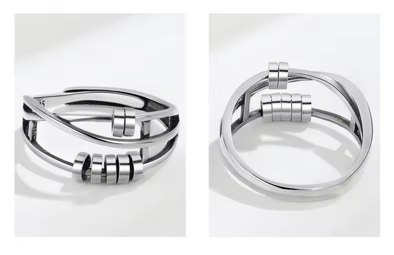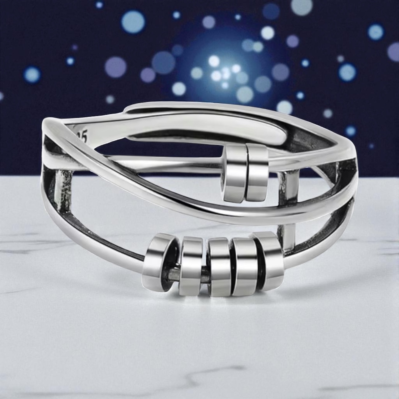 Unveil the enchanting allure of our Light Luxury 925 Sterling Silver Fidget Ring, a stunning creation that harmoniously marries sophistication with serenity. Crafted from premium 925 sterling silver, this exquisite piece boasts a collection of elegantly rotating beads that not only dazzle the eye but also offer a calming tactile experience. Perfect for soothing moments of anxiety and stress, it transforms a simple accessory into a personal oasis of tranquillity.
