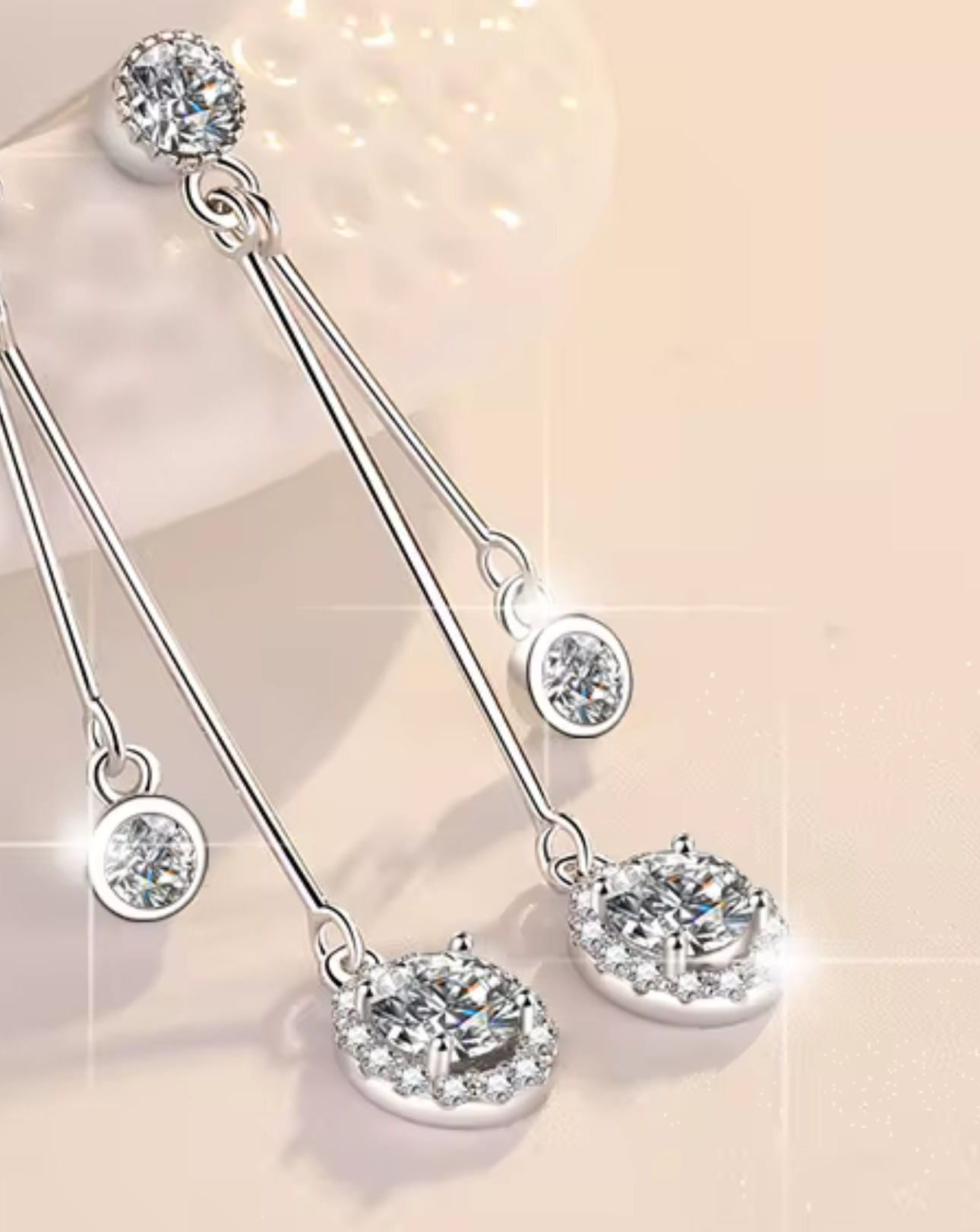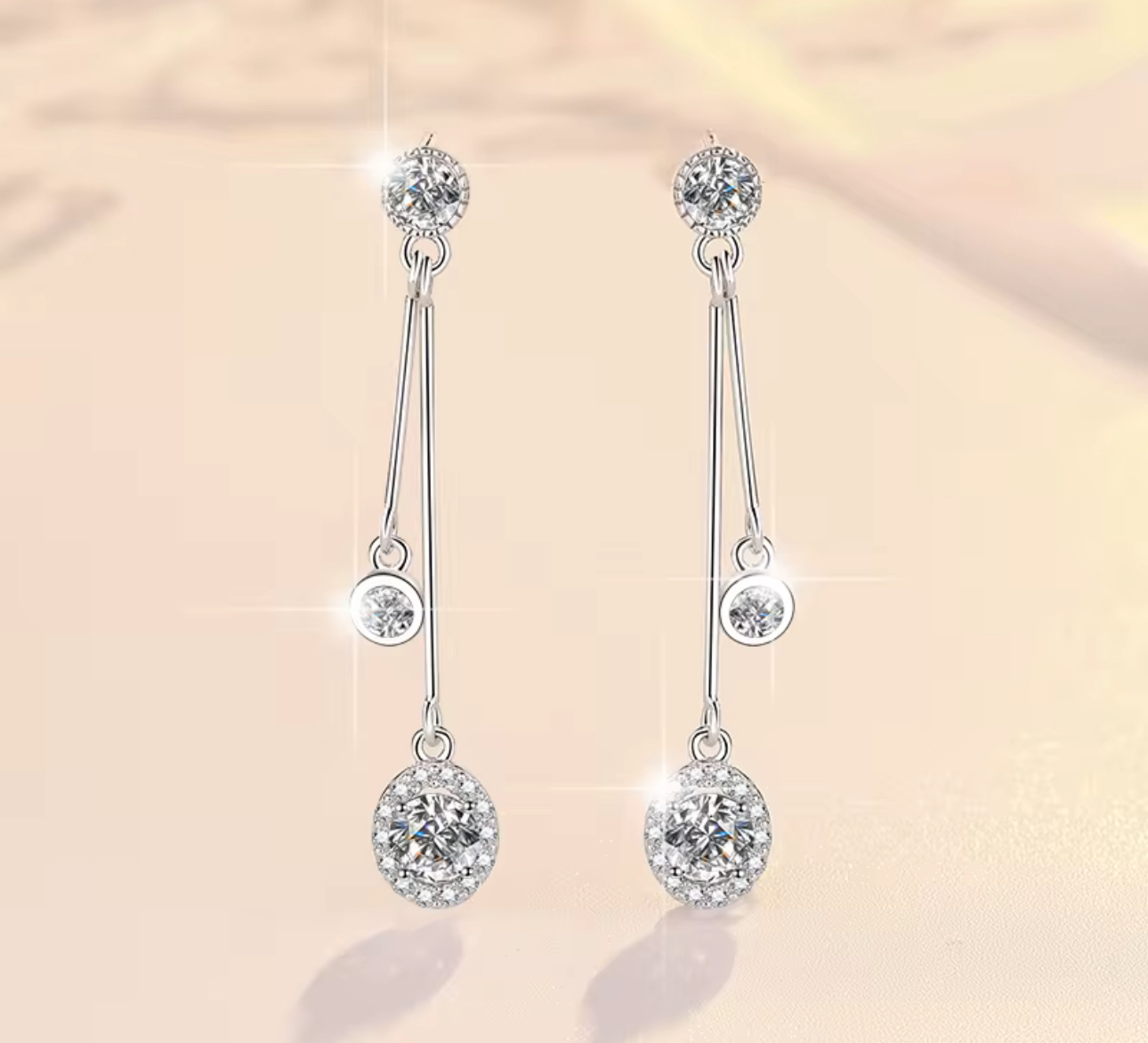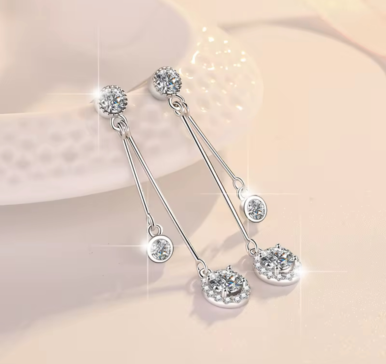 Immerse yourself in the luxurious charm of our Fashion Fringe Earrings, a masterpiece of fine jewellery that exudes sophistication. These breathtaking dangle earrings are designed to captivate, adorned with exquisite 0.5-carat Moissanite gemstones that sparkle with an extraordinary brilliance, surpassing even the allure of diamonds.