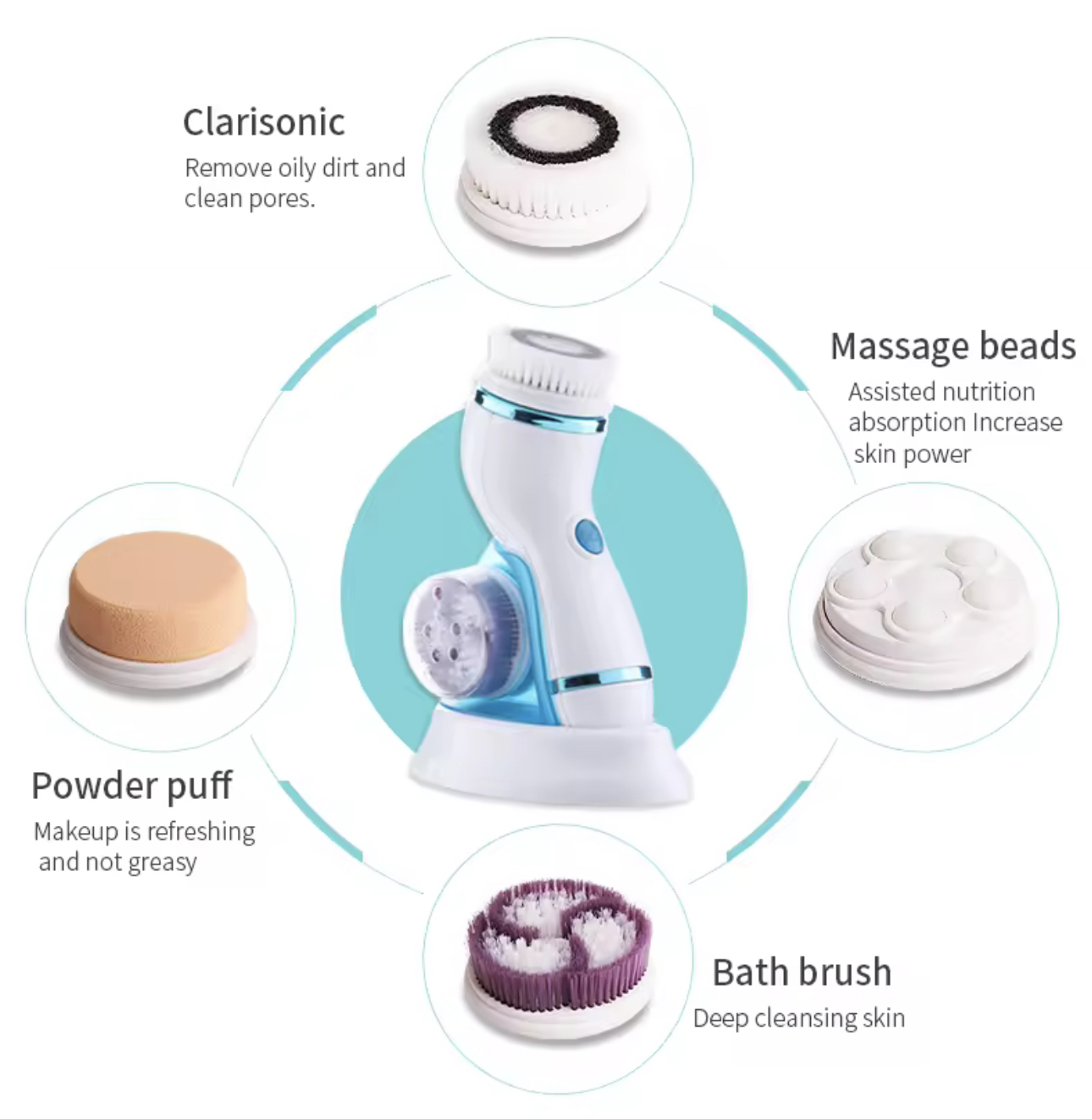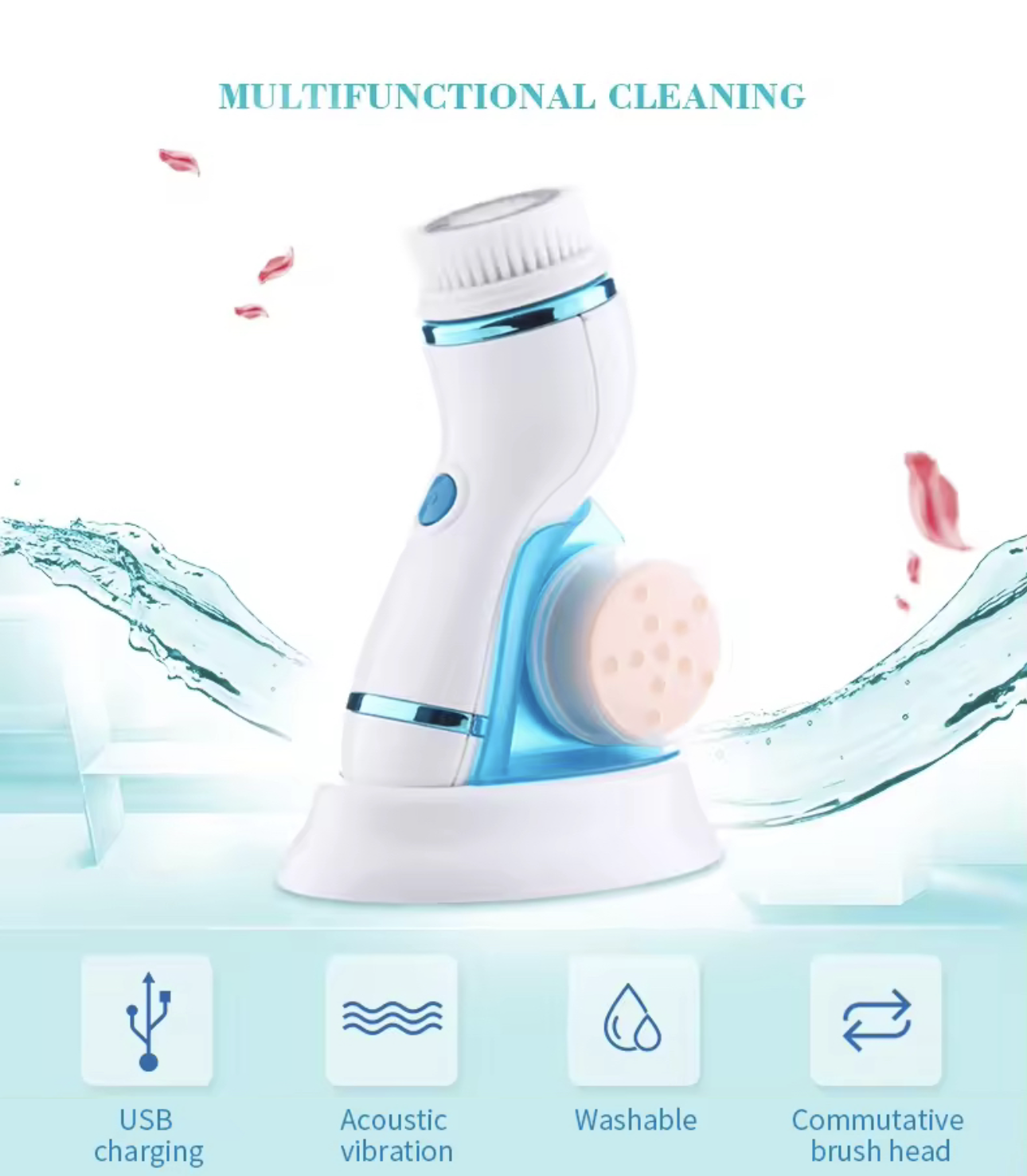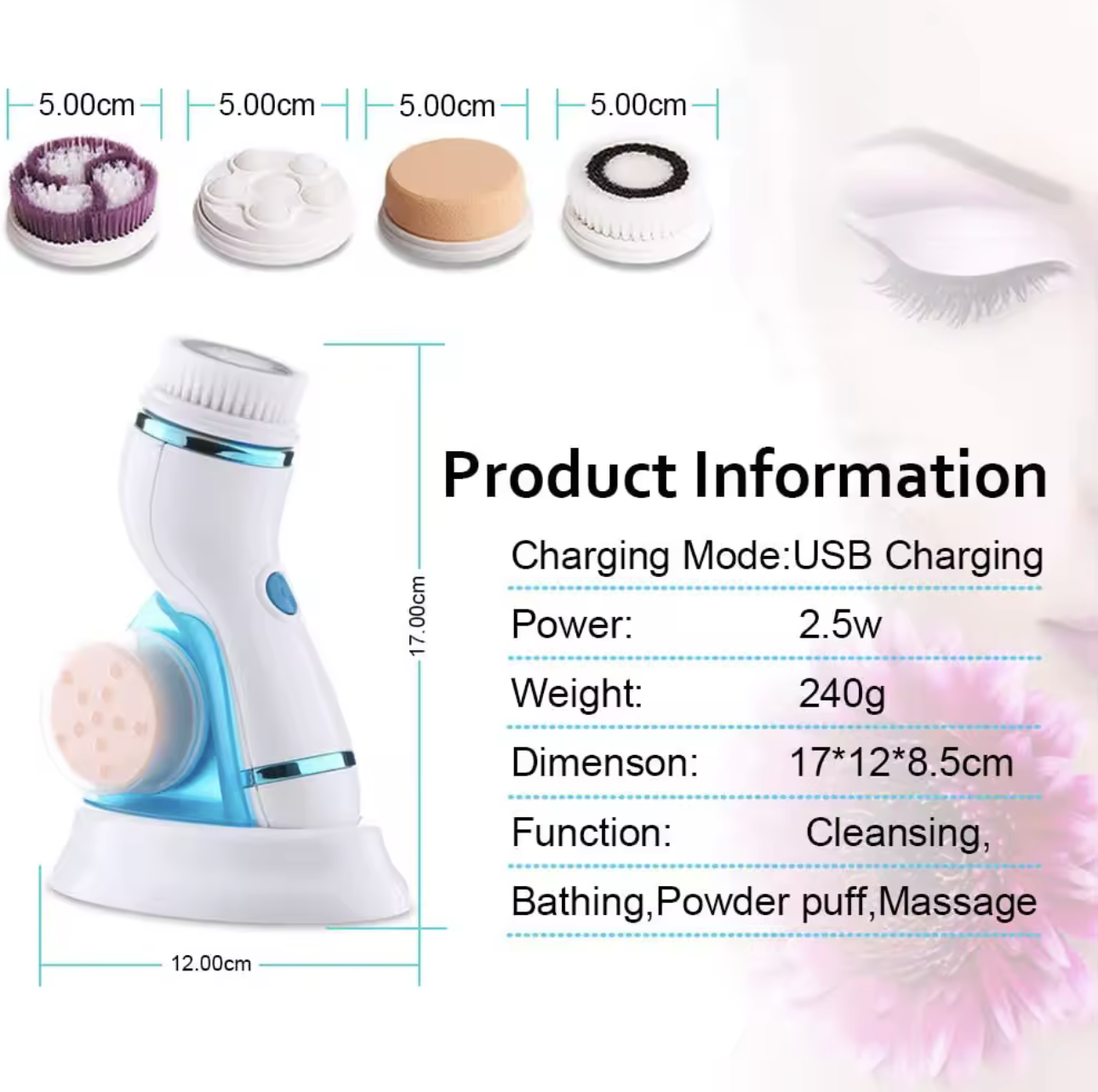 Crafted from high-quality, waterproof silicone, this device boasts a powerful 2.5W output, ensuring that it not only cleanses deeply but also remains gentle on your skin, making it suitable for all skin types. Each thoughtfully designed package includes four interchangeable heads, each tailored to address various skin concerns, from exfoliation to gentle cleansing. You’ll also find an easy-to-follow user manual to help you get the most out of your new device.