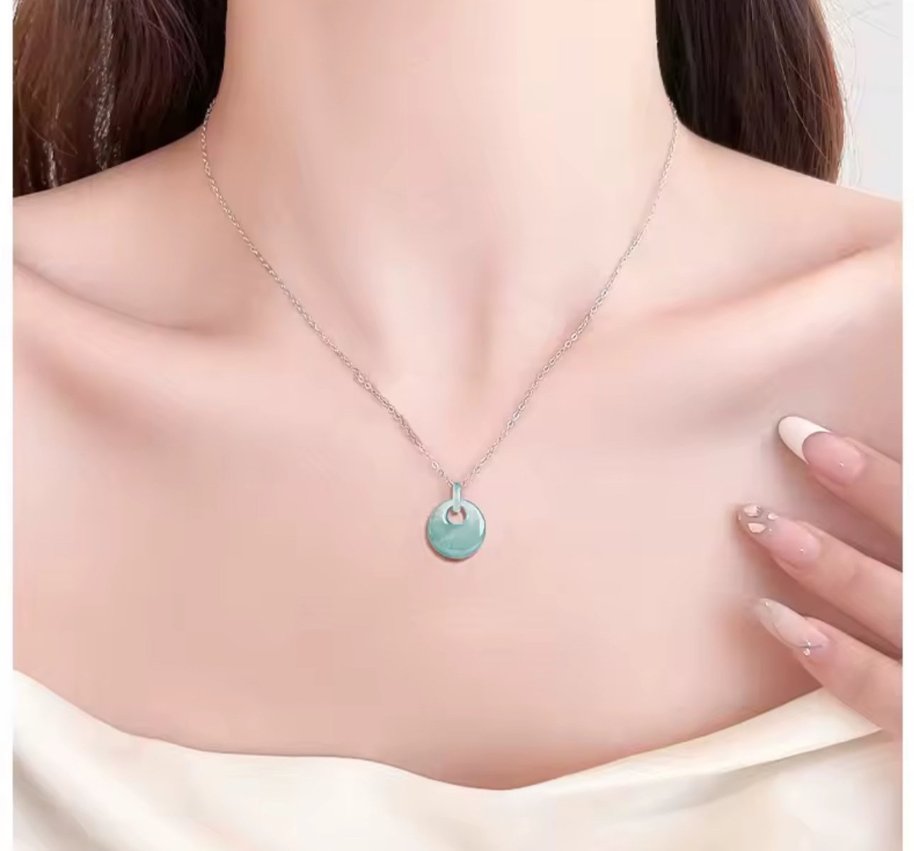 Discover the allure of this enchanting pendant, crafted from authentic jadeite, celebrated for its mesmerizing blue tones that resemble tranquil waters. The pendant’s unique doughnut shape symbolizes eternity, making it not just a piece of jewelry but a meaningful statement of perpetual love and harmony. Complemented by a gentle cotton yarn chain, this pendant is designed for comfort and style, while the lustrous 925 sterling silver setting adds a touch of sophistication to any ensemble. Wear it to elevate your everyday look or as a striking accessory for special occasions.