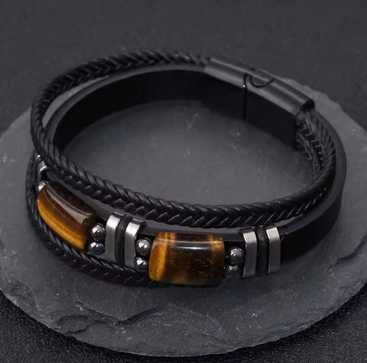 Introducing a stylish and contemporary piece of jewelry, the Retro Men’s Bracelet features a stunning natural Tiger Eye stone, known for its rich golden and brown shades that beautifully catch the light. The bracelet is meticulously crafted with durable stainless steel, providing a polished finish that complements the striking stone.