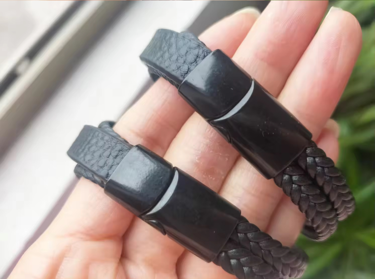 This classic multi-layer design includes a braided black leather band, offering a comfortable fit while adding an element of rugged sophistication. The intricate weaving of the leather showcases exceptional craftsmanship, making this bracelet not just an accessory, but a true statement piece.