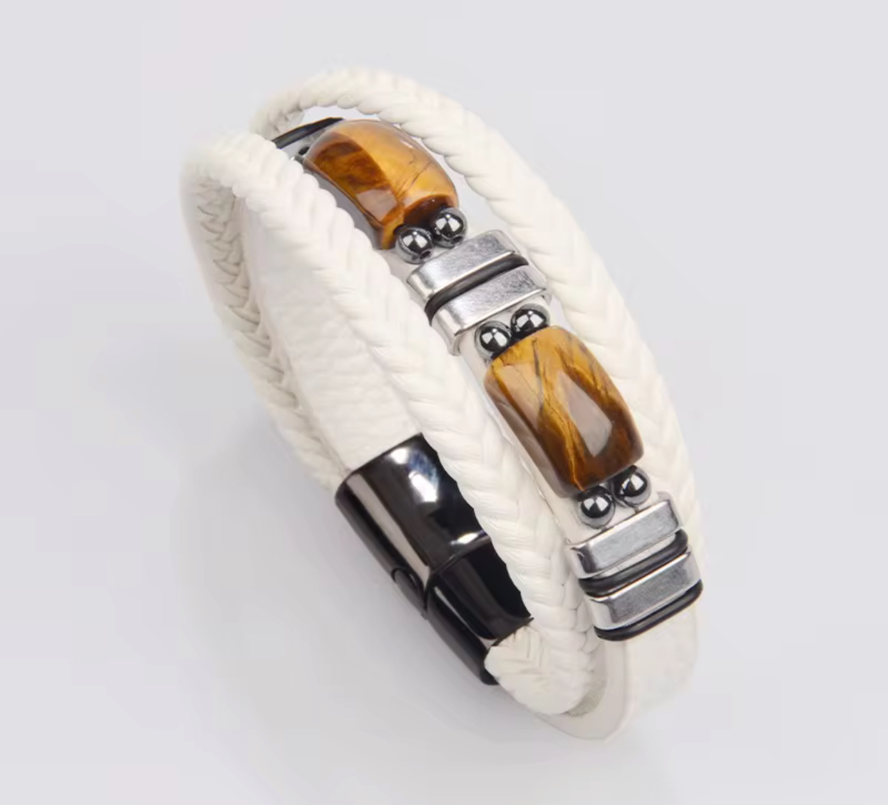 Introducing a stylish and contemporary piece of jewelry, the Retro Men’s Bracelet features a stunning natural Tiger Eye stone. This stone, known for its rich golden and brown shades, beautifully catches the light. The bracelet is meticulously crafted from durable stainless steel, providing a polished finish that complements the striking stone.