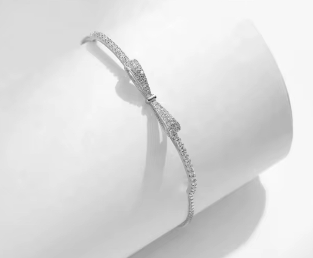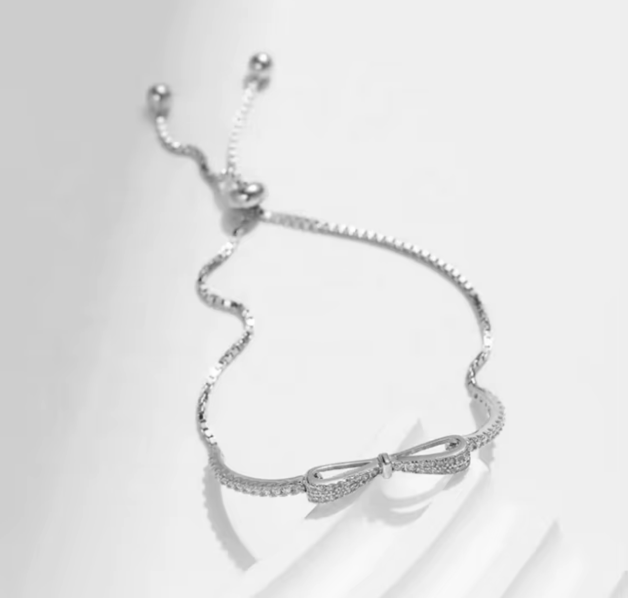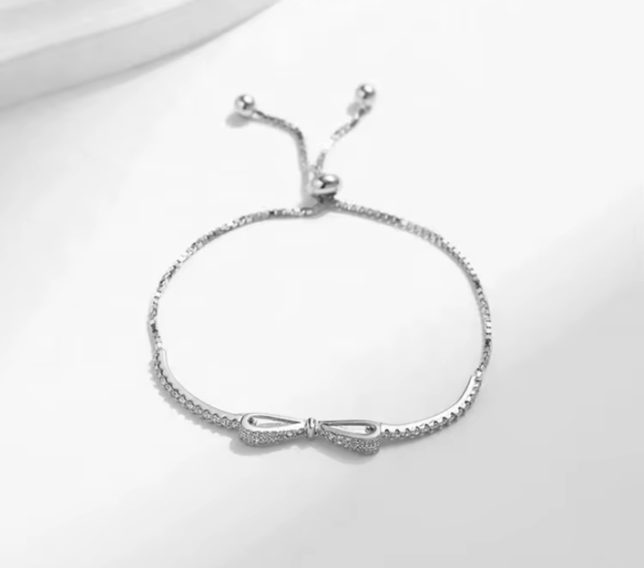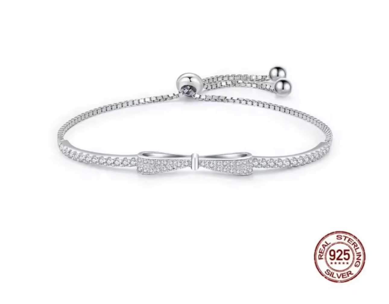 Introducing the 925 Sterling Silver Bowknot Bracelet, adorned with sparkling cubic zirconia, a true symbol of elegance and resilience.